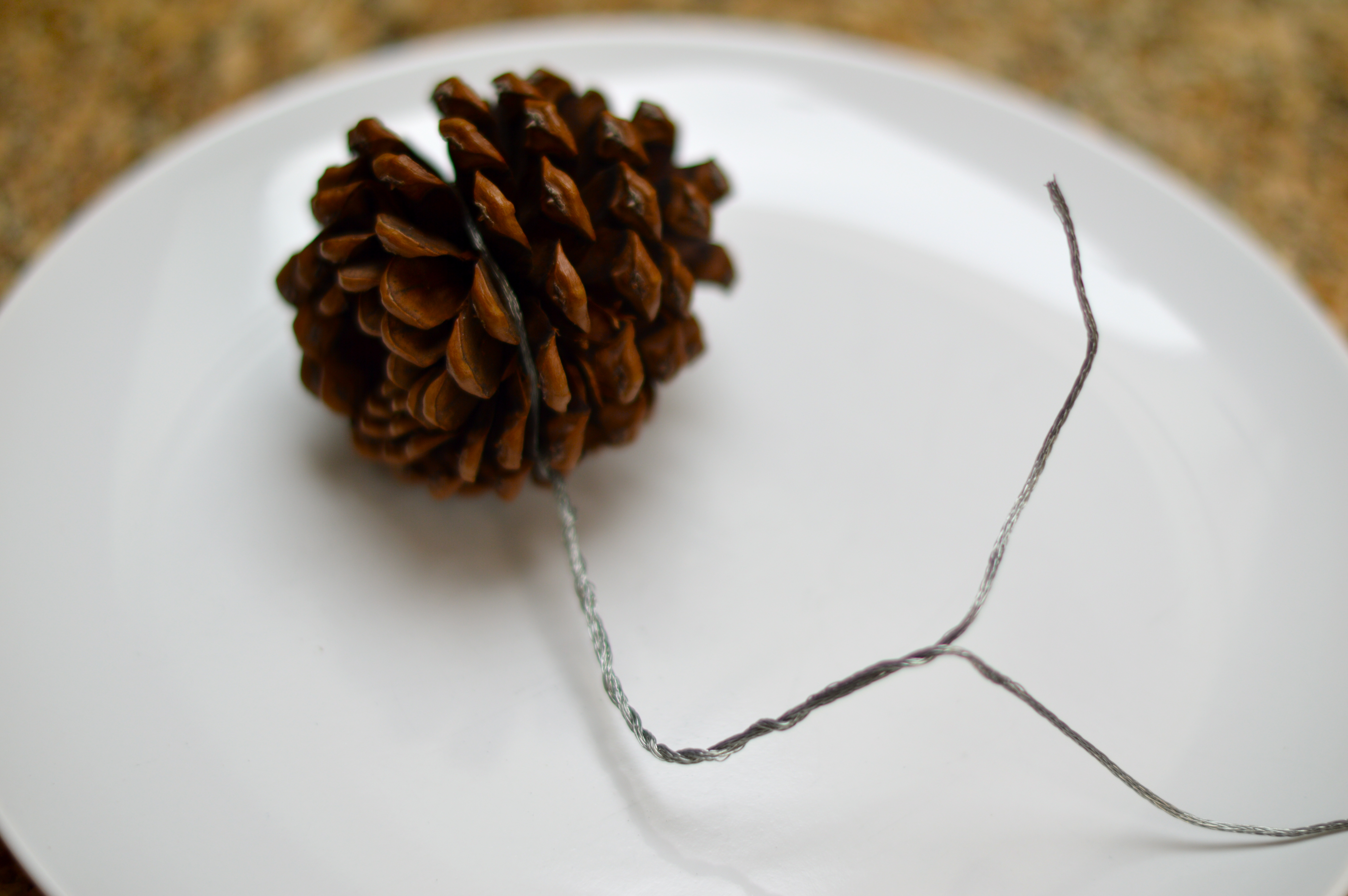 Wrap the wire around the pine cone, leaving a length at the end to twist around a tree branch. Spread peanut butter onto the pine cone, getting it into all the little crevices. Then roll peanut butter-covered pine cone in seeds on a dish. Hang from tree and watch the birds show up. Remember to choose a tree branch that you can see from a window in your house. It took the birds a day or two to discover our bird feeder, but it has been a week now and all the seeds and peanut butter are gone. Time to make another one!