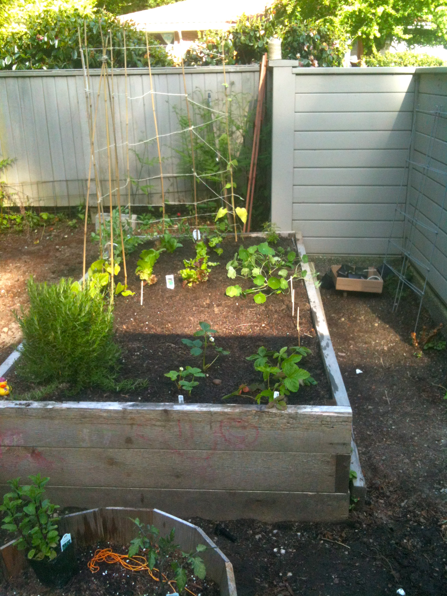 As it turned out, the garden was a funny and beautiful success ~ an exercise in wabi sabi. Our peas were fantastic on their imperfect stakes. They grew like crazy and the kids enjoyed picking them every day for a month. Then our two small nasturtium plants went gangbusters. They took over the carrots and scallions and eventually had to be completely pulled. And now, our beans have gone crazy! We call them “the leaning tower” due to their robust growth towards the sky. Jokes have been made about whether we traded a cow for the seeds… and whether Jack will by coming by anytime soon. Lastly, our tomatoes are the best I have tasted in years. When planning something in May, it is impossible to know what unexpected beauty and delights will occur in June, July, or August… A good lesson. Thanks, Honey.