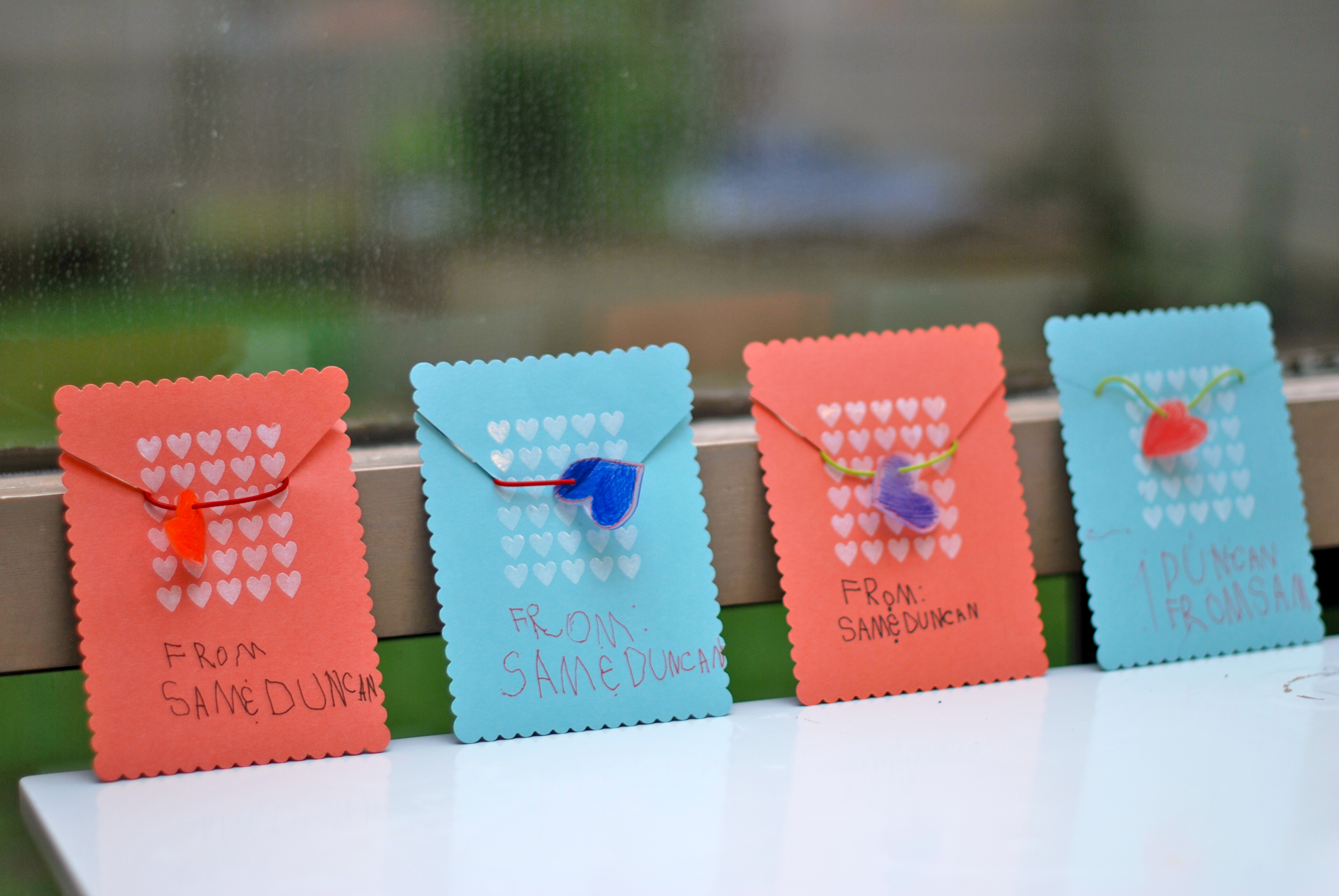 The part of me that loves coming up with projects to do with my kids finds this situation completely satisfactory. We get to work on a project together and have hours of entertainment! The kids will have an end product that they get to share with their peers! Fun! The other part of me that is a bit of a perfectionist with said projects is having a harder time with the process. In my mind’s eye, the valentines we made together were finished weeks ago and were exceptionally cute (read: professional).