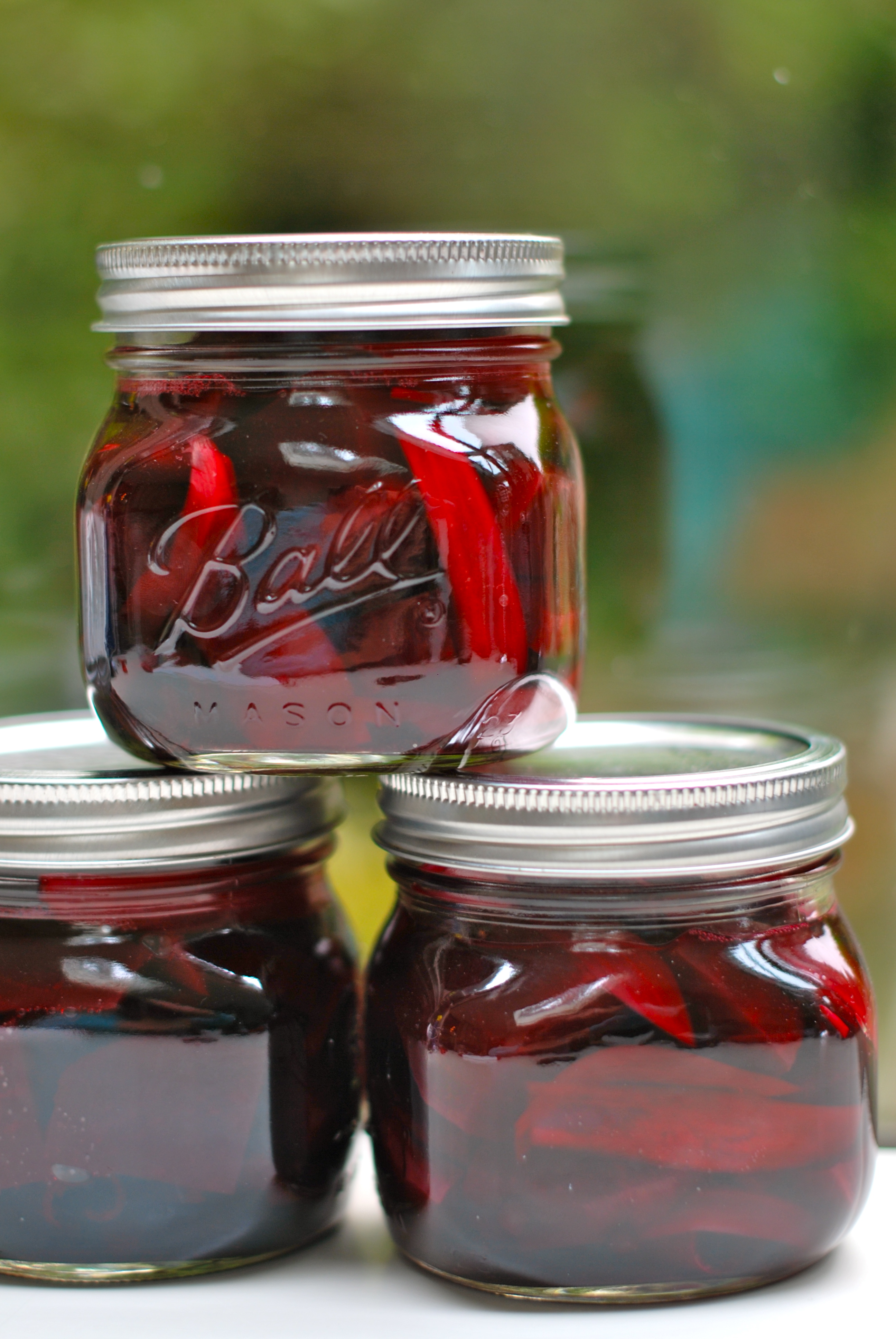 If you are thinking about preparing beets at home, it can feel a bit intimidating at first, with their long greens and dirt-covered skins. But roasting beets is quite simple and I recommend that you try it, if you haven’t before. (Here is a step-by-step guide to roasted beets.) Pre-prepared beets are also available in most grocery stores. I even saw a huge container of them at Costco the other day (maybe they are pedestrian after all)! The question is, what do you do with these beets once roasted or taken out of their vacuum pack? Have you opened that container, hoping to replicate your favorite restaurant-quality salad only to be a bit disappointed? I have learned that by just letting them hang out in a vinaigrette for a half hour or so before adding them to a salad does wonders, or… (drum roll, please)… You can pickle them for later use!