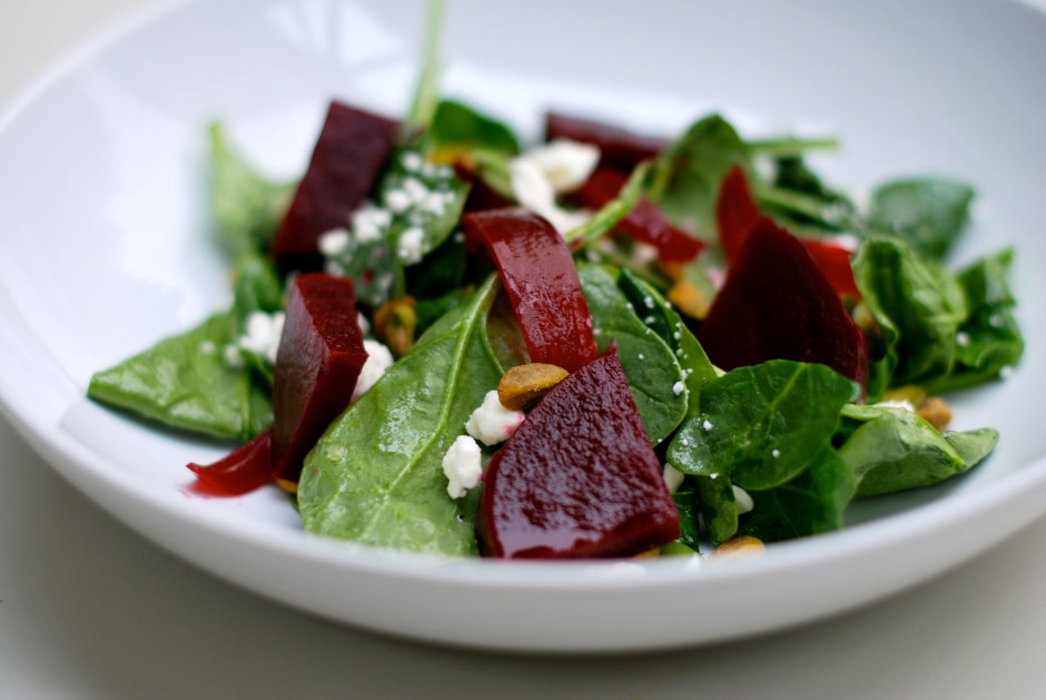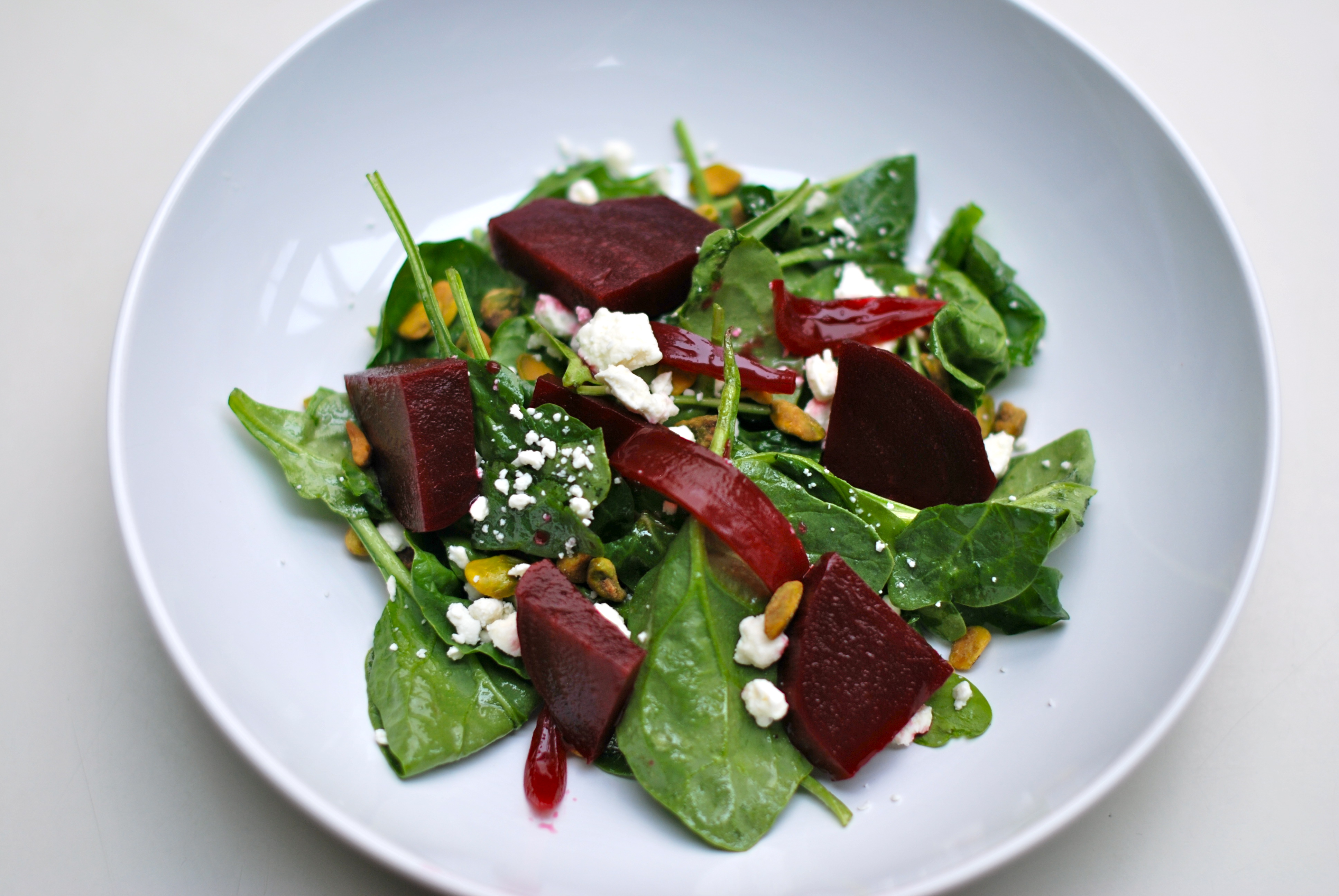 - Beets show off very well alongside salty cheeses (such as feta or goat) and earthy nuts (such as pistachios or walnuts)
