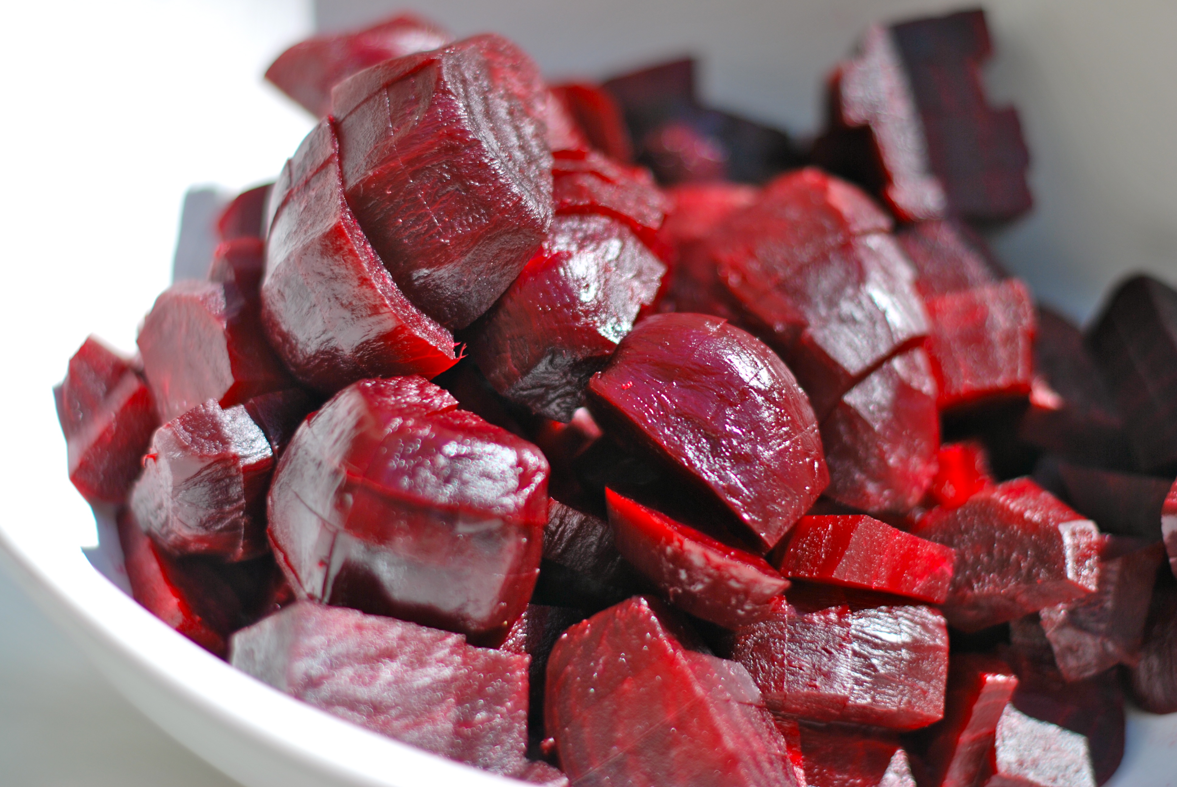 (Note: The beet skins should slip off easily – just rub them with your fingers. You can wear latex gloves to prevent your fingers from getting stained. If you have trouble slipping off the skins, you can also use a vegetable peeler.)