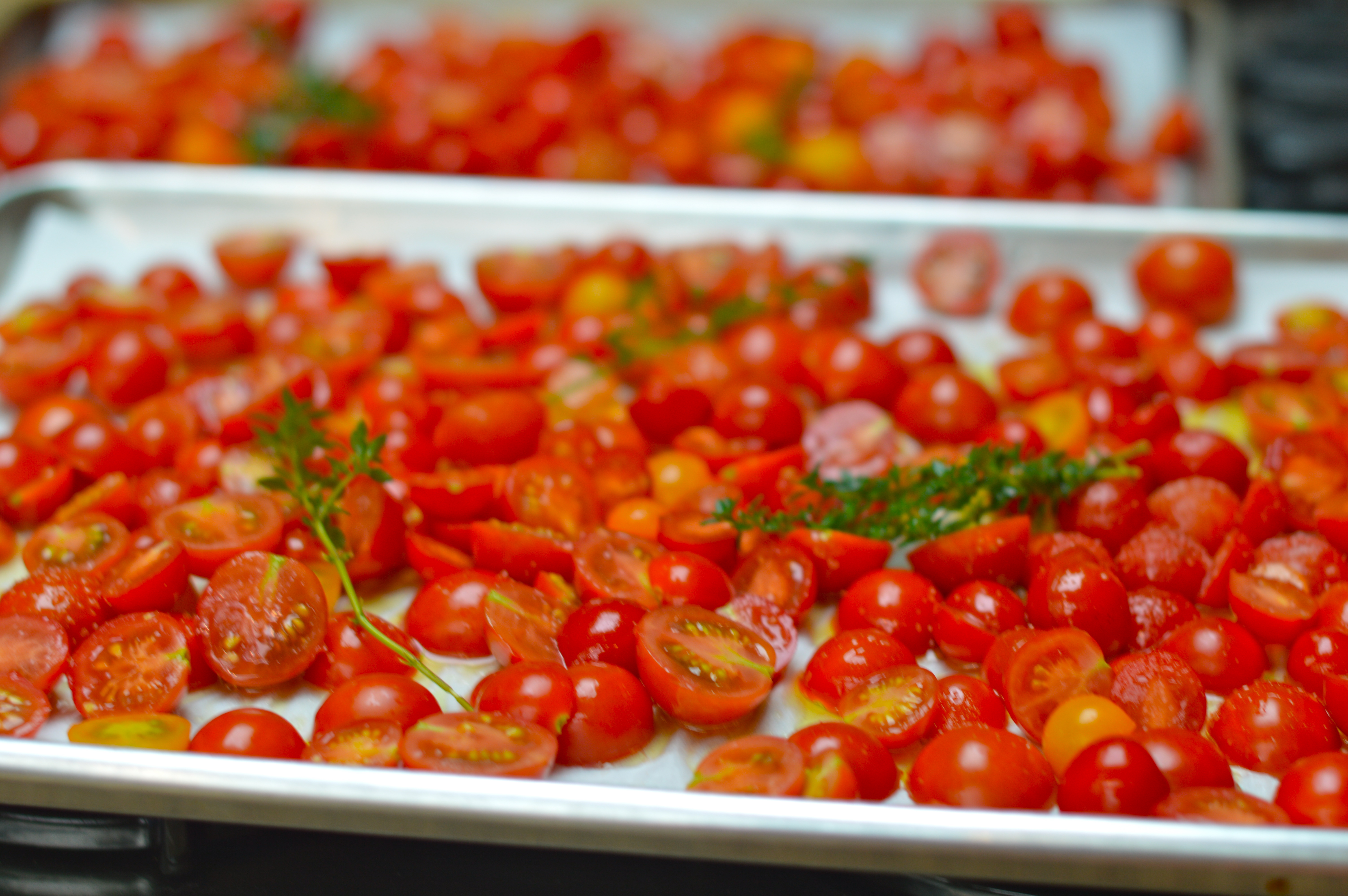 Some days there just aren’t enough hours in the day. And some weeks there just aren’t enough hours to make tomato sauce… So what does one do when the tomatoes are ripe and abundant in the garden, but you don’t have enough time to can or eat them all before they go bad? The answer? You make slow roasted tomatoes. “Notes on Dinner” has done a lovely job outlining how to slow roast tomatoes. Her recipe is based on a menu item at a fantastic local restaurant’s menu. Vios Cafe is a wonderful restaurant in Seattle and is extremely family-friendly with an entire area devoted to kid play. One can enjoy a glass of wine, while eating delicious food, and everyone is happy. But, until you are able to make it to Vios, cook yourself up some of their slow roasted tomatoes.