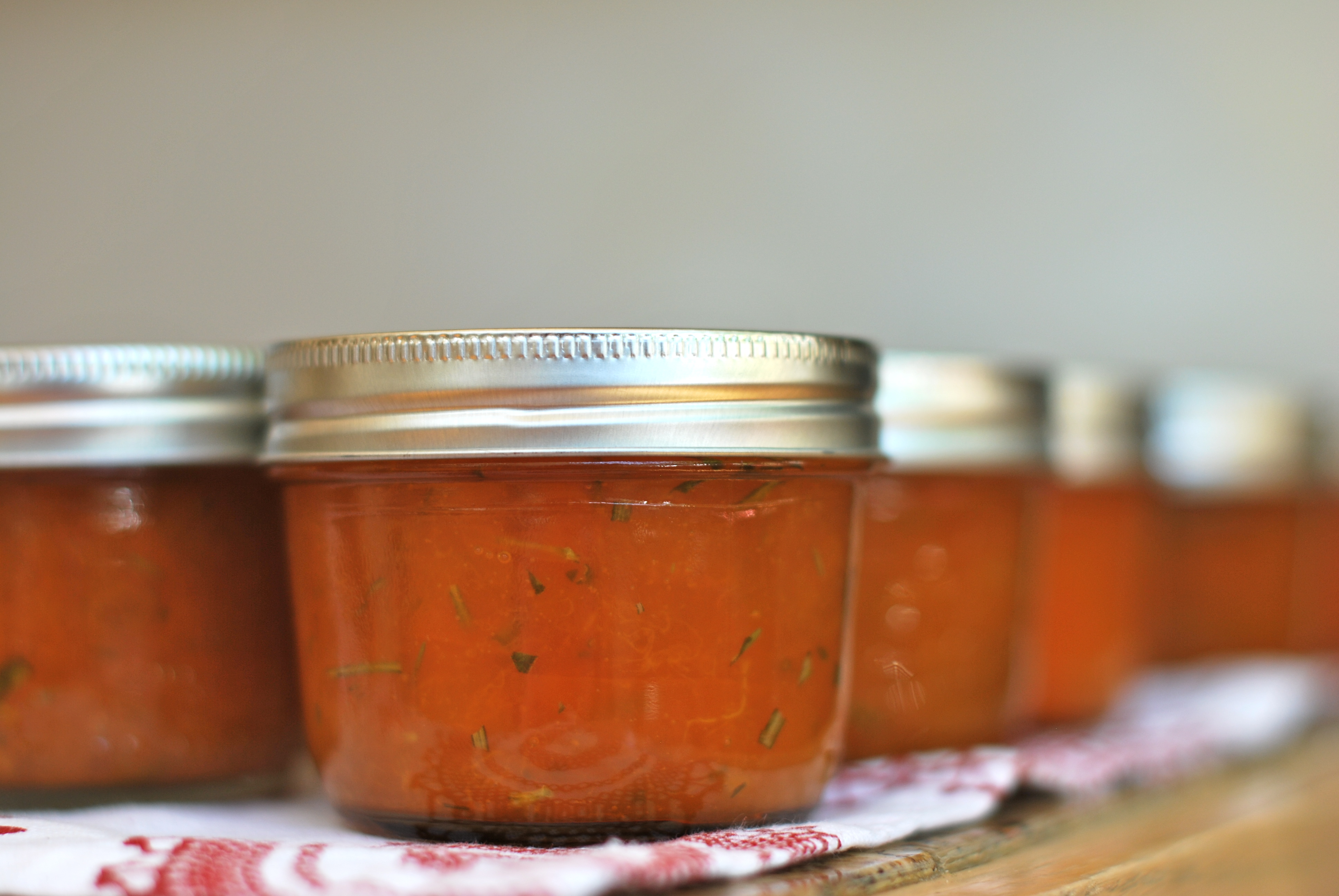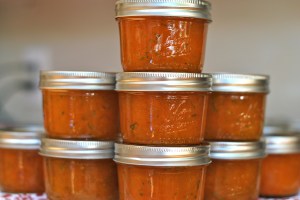 Ladle jam into half-pint jars. Wipe rims of jars with wet paper towel, apply lids and rings and process in your boiling water canner for 5 minutes.
