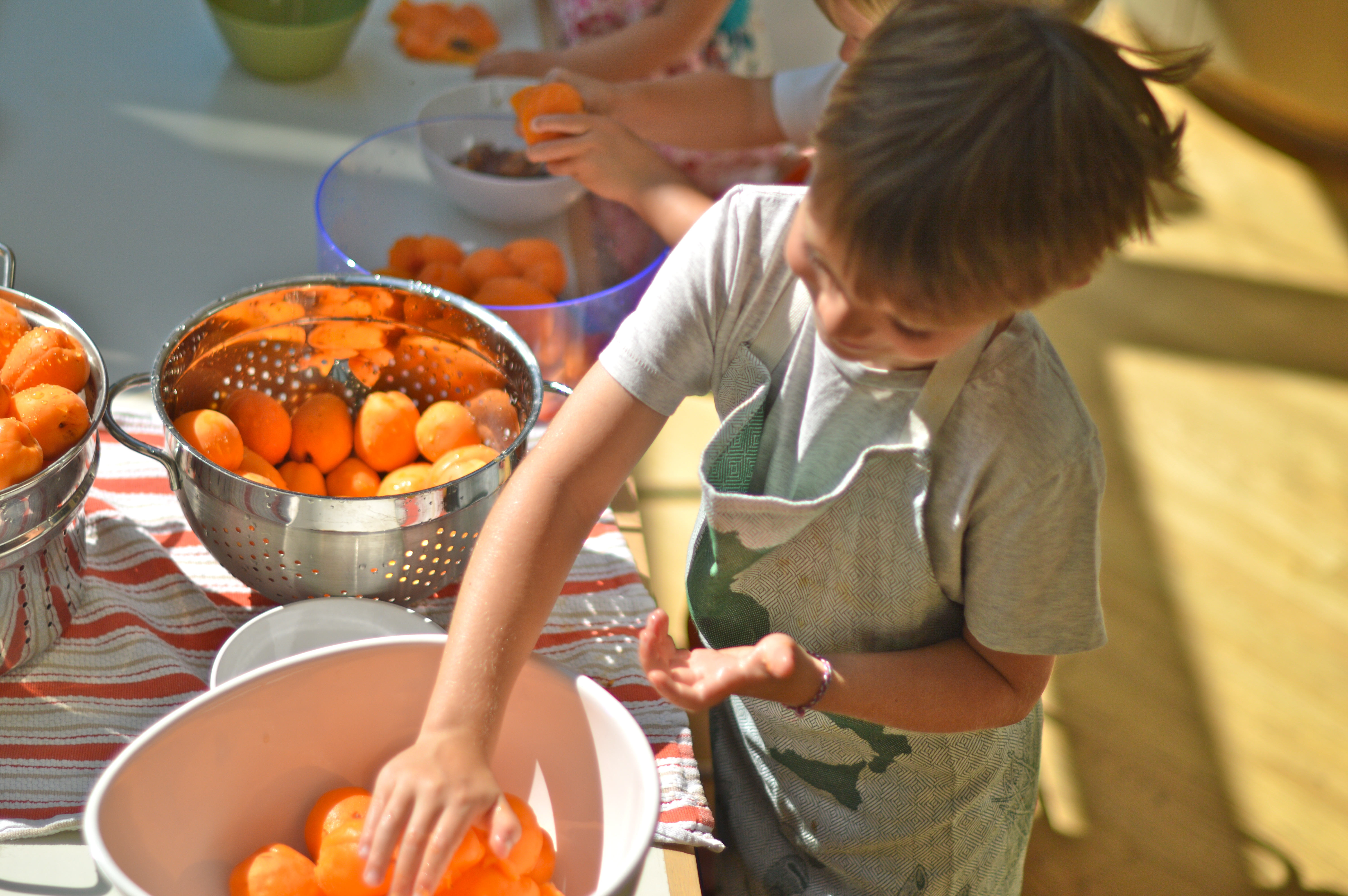 So, (surprise, surprise) things don’t seem to be slowing down around here! Despite the fact it is summer, we just seem to have more things we want to see, do, and eat! We were at the farmer’s market last Sunday and I noticed that apricots are in season. For some reason I thought it would be later! Well, the guy said it was time, so we bought 25 pounds of apricots. As I look back at the blog though, this is the exact same time as last year. I posted Apricot Rosemary Jam on July 25th, so I guess we are right on schedule! Between the time we bought them and when we made the jam, we ate a whole lot of apricots and also took out the pits… and were left with approximately 12 pounds of apricots. So, we made four small batches of jam!